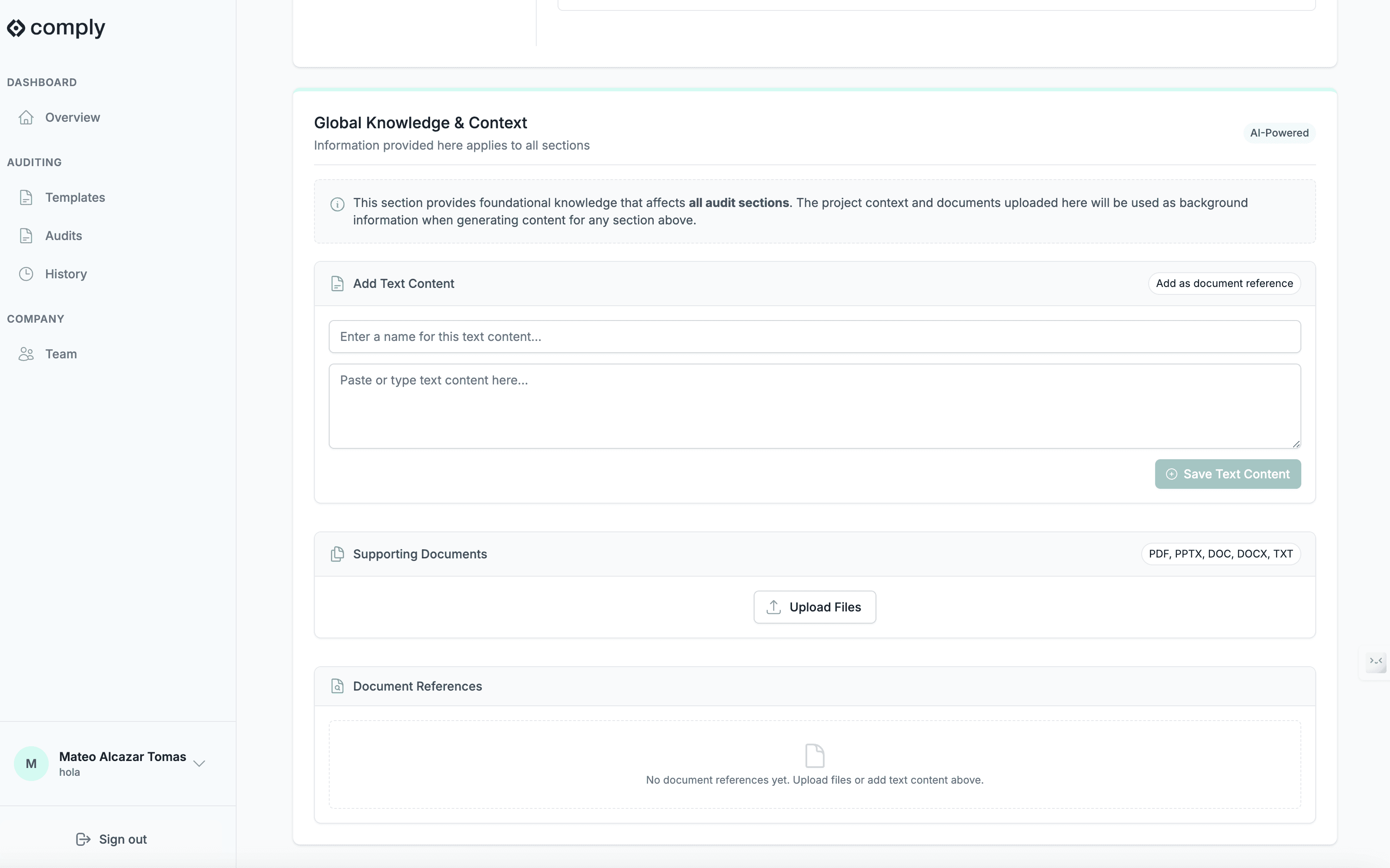 IA especializada en cumplimiento que genera informes en minutos, aprendiendo automáticamente el estilo y la terminología de tu organización.